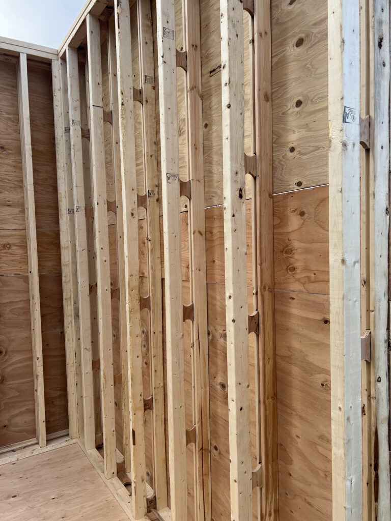 Currently, we are offering our stud in standard 2x8 dimensions (1 ½” x 7 ¼”). They are fully interchangeable with solid sawn lumber and are available in lengths of 104 ¼”, 10’, and 12’. Much like ordering a set of I-joists, we will provide you with a set of shop drawings that include the layout and a quantity list. Upon delivery, you will receive lifts of studs as you would in your typical framing package.